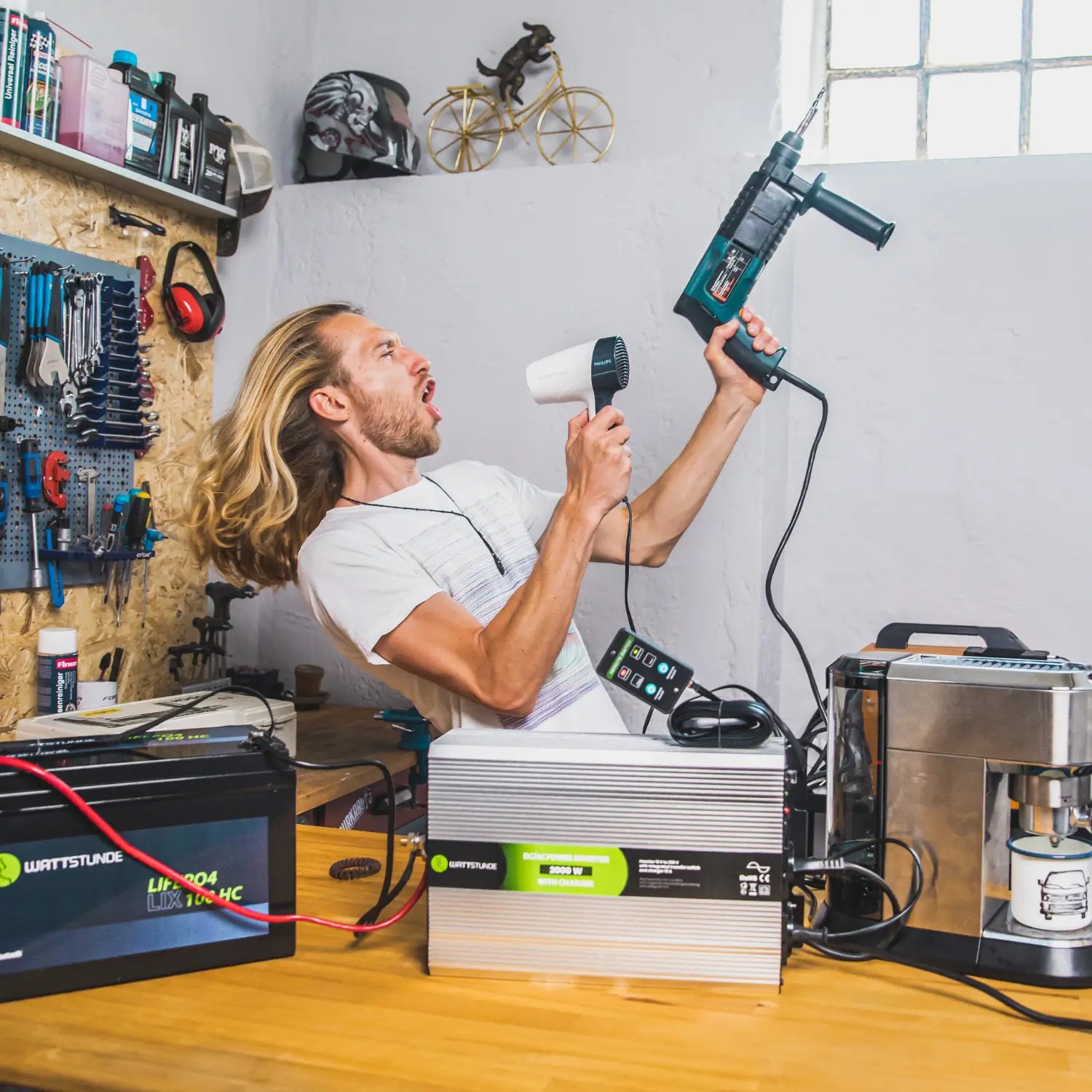 Wandelt Gleichstrom aus der Batterie in nutzbaren 230V-Wechselstrom um – für Kaffeemaschine, Laptop & Co.