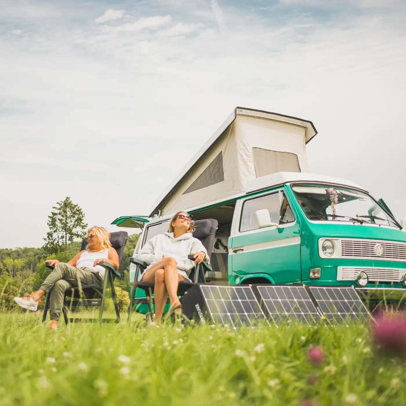 Beim Campen kann eine Powerstation als flexible Ergänzung dienen, um zusätzliche Geräte zu betreiben und die Bordbatterie zu entlasten.